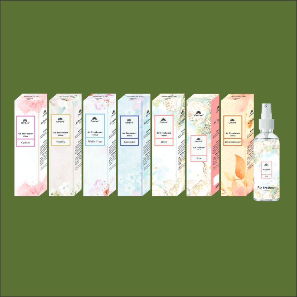 Ombre™ European-Inspired Air Freshener Spray (100 ml) | Premium Aromatic Scents for Home, Office, and Car – Opium, Vanilla, White Sage, Lavender, Rose, and Sandalwood