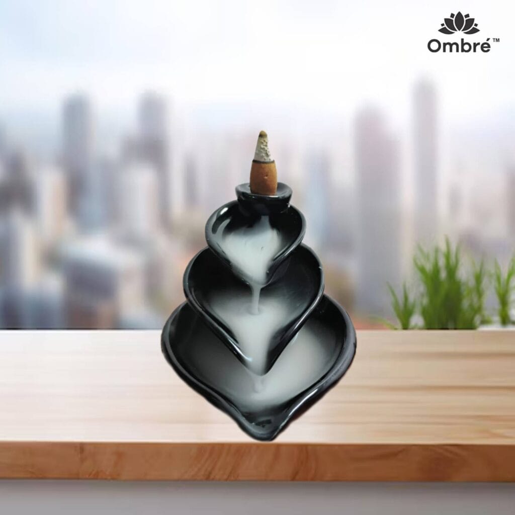 Ombre™ Ceramic Leaf Backflow Incense Holder – 3-Tier Smoke Waterfall Aromatherapy Ornament