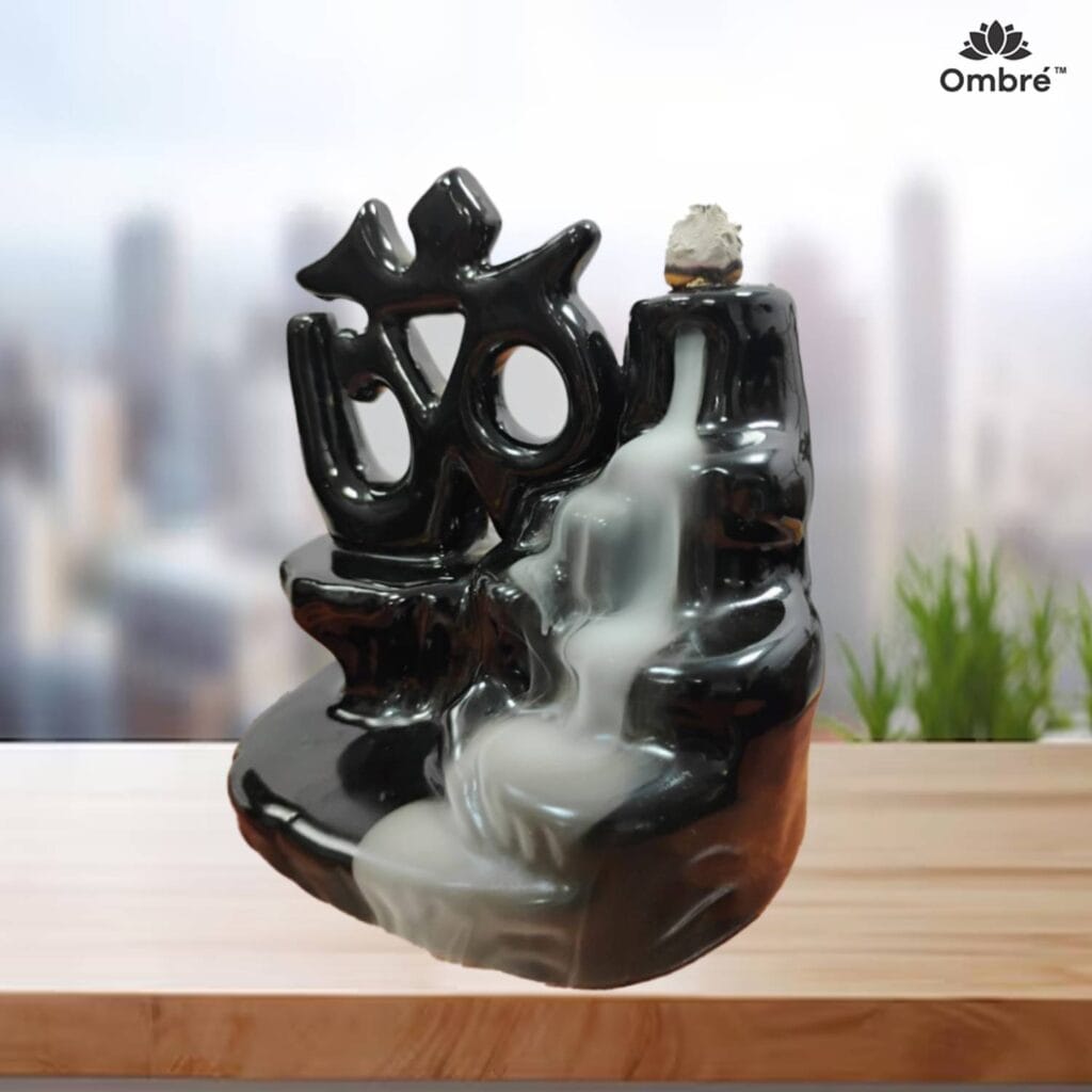 Ombré Ceramic Om Symbol Backflow Incense Burner for Meditation, Aromatherapy & Home Décor - 13.5 cm Tall